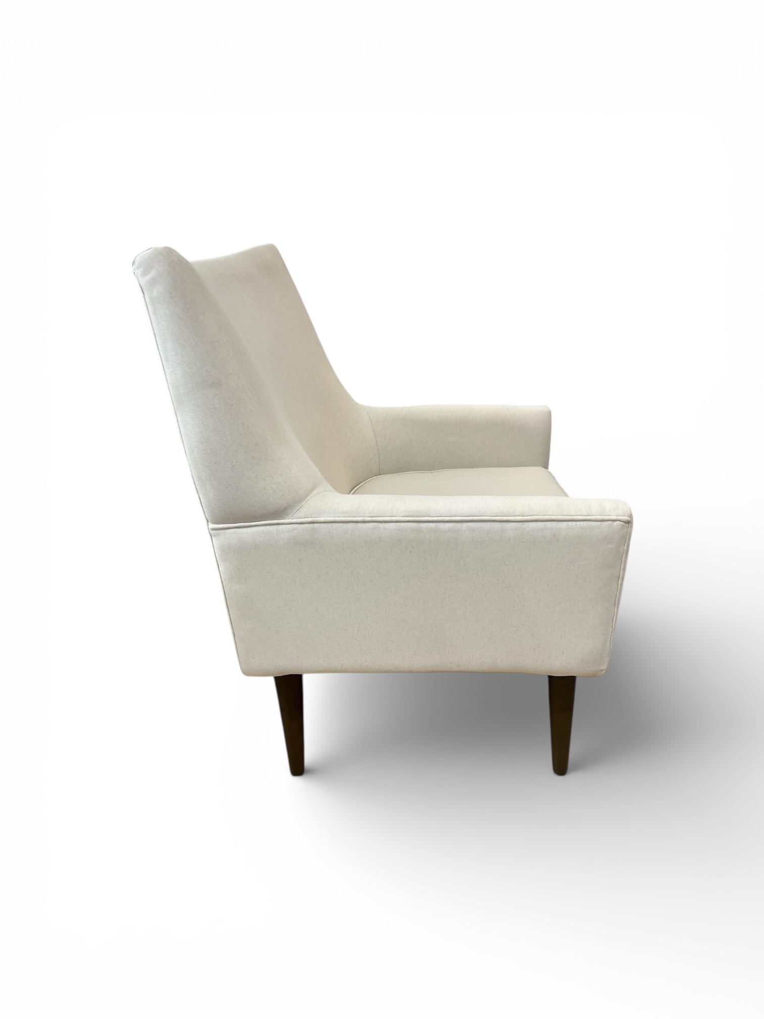 <p style="text-align: justify;"El asiento y respaldo están tapizados en una tela suave de tono claro que transmite frescura y luminosidad, mientras que los laterales con acabado texturizado de apariencia natural aportan un toque distintivo y sofisticado. Esta combinación crea un equilibrio perfecto entre modernidad y elementos orgánicos, ideal para ambientes contemporáneos, escandinavos o minimalistas.Tapizada en tela Lino Beige con pata color nogal.