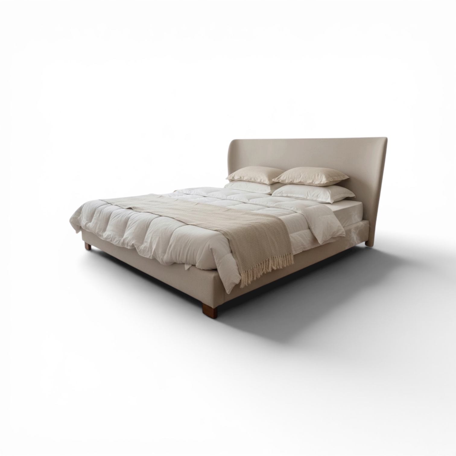 Descubre la esencia del lujo tranquilo con esta cama king size de diseño contemporáneo. Su cabezal tapizado, combinado con texturas suaves y una iluminación cálida, crea un ambiente sereno y sofisticado. La pieza perfecta para transformar tu dormitorio en un verdadero refugio de descanso y estilo.