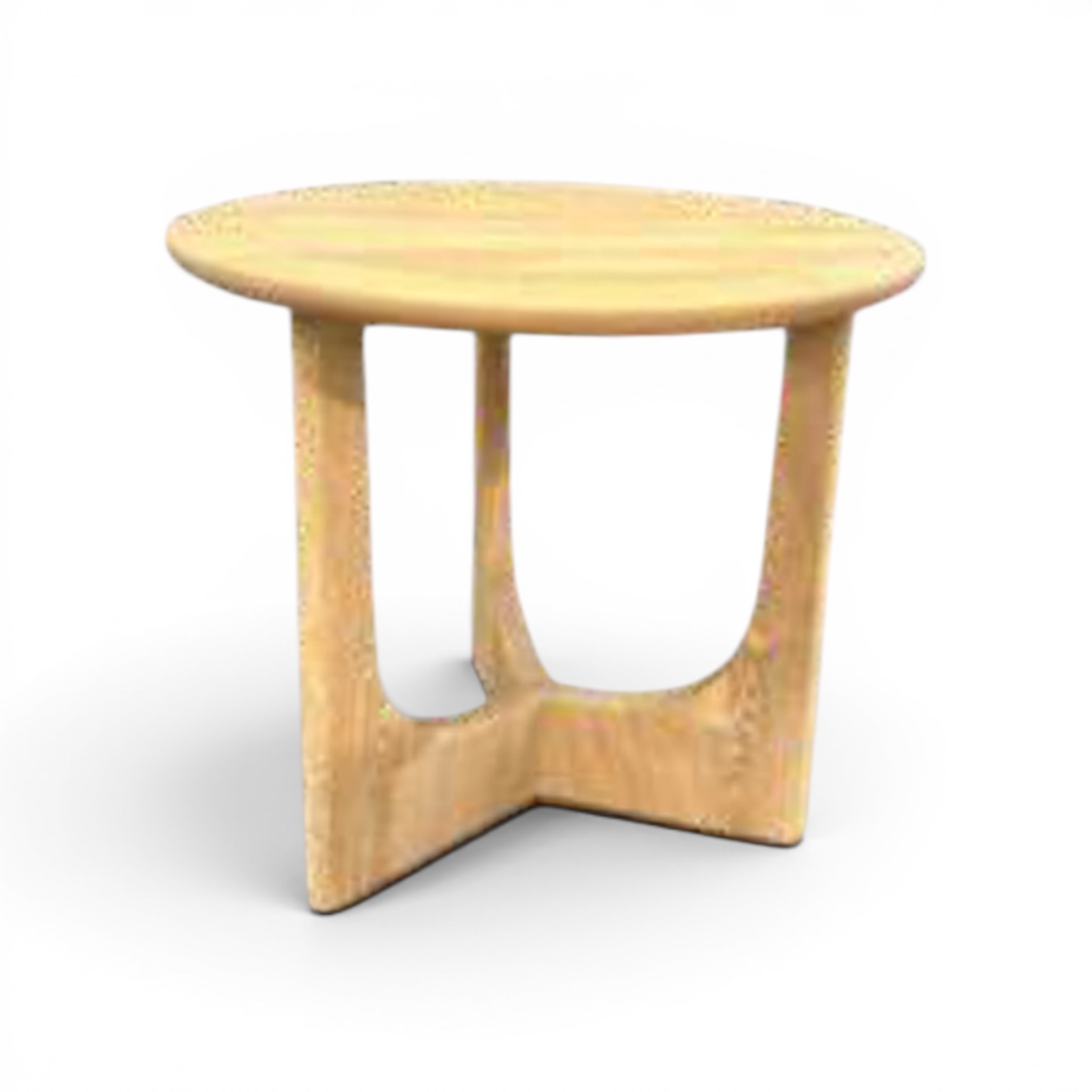 Esta preciosa mesa lateral redonda combina a la perfección estilo contemporáneo con una presencia orgánica y natural. Fabricada en madera rosa morado, su superficie presenta un aspecto ligero y práctico.