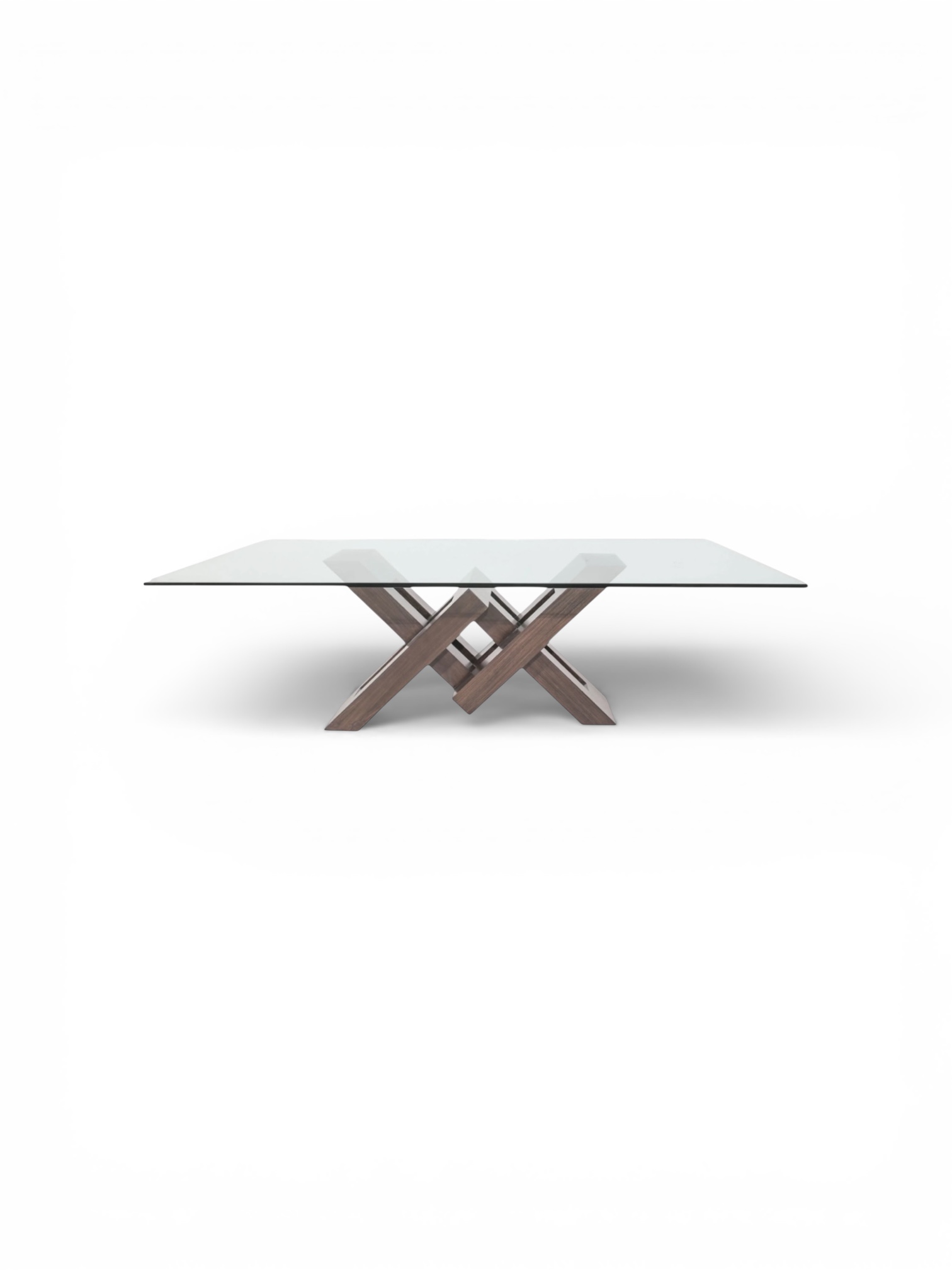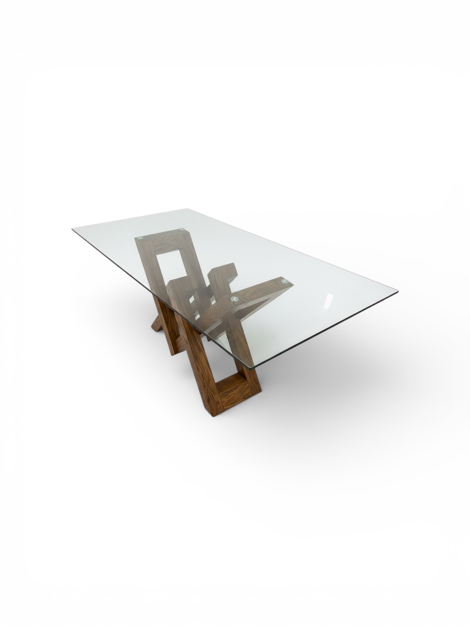 Base fabricada en chapa de encino pintada en color Nogal Natural. Cubierta de cristal claro de 12mm.