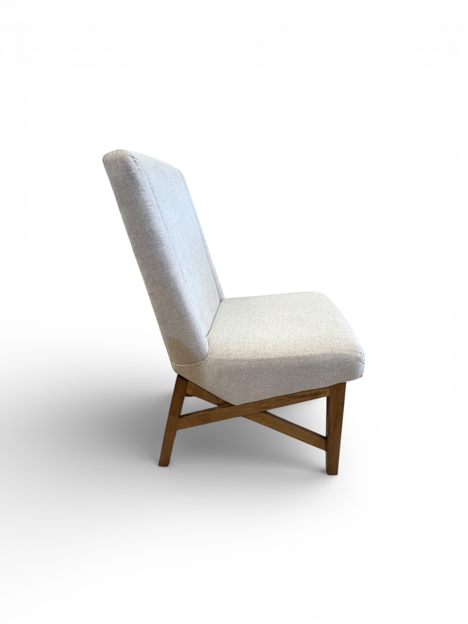 Tapizada en tela Lucca Sand con madera en color avejentado.