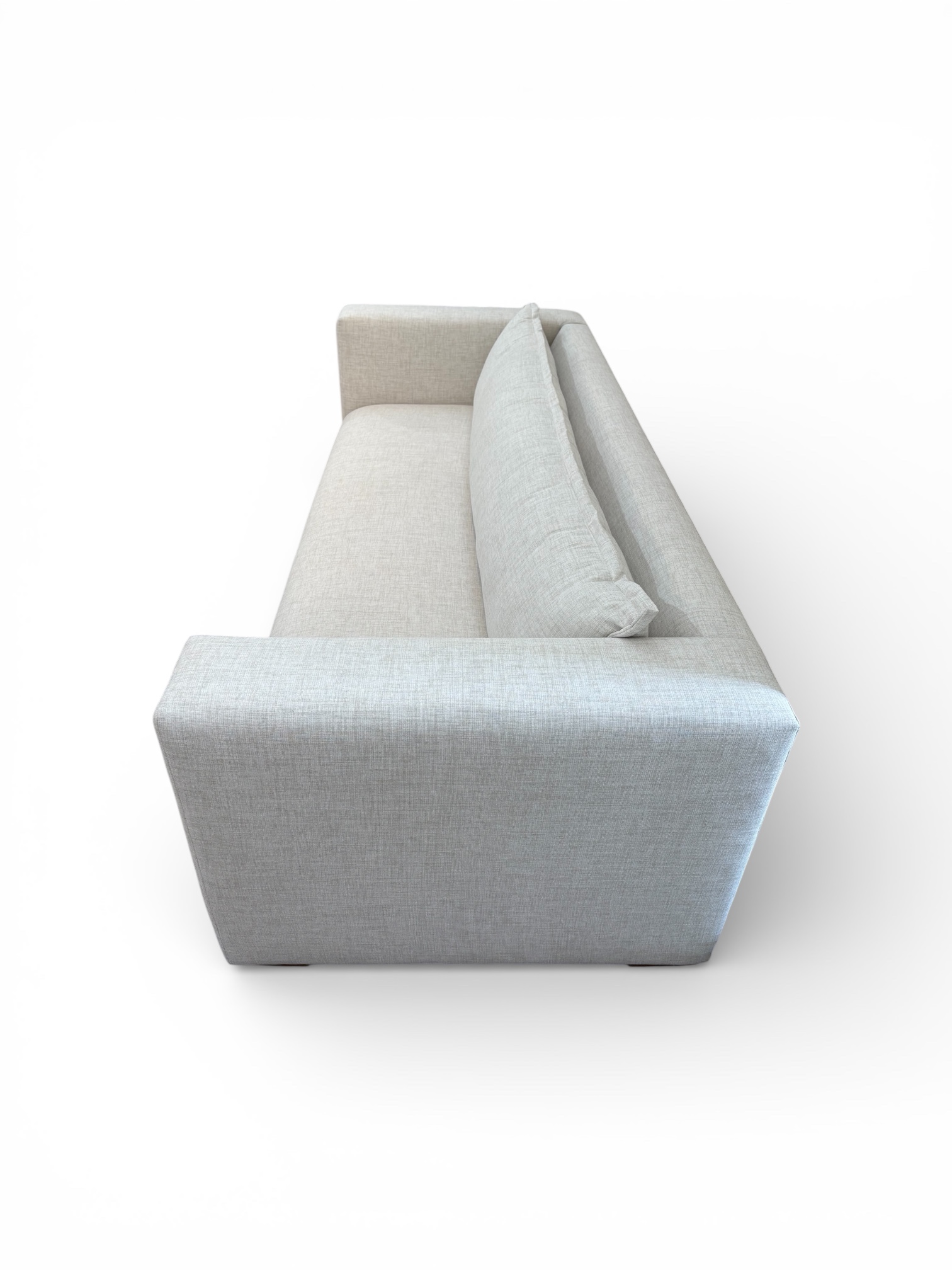 Tapizados en tela de alta calidad en tono claro, estos sofás brindan una textura suave al tacto y una apariencia moderna que realza cualquier espacio. Sus líneas rectas, brazos amplios y cojines generosos ofrecen un confort excepcional, ideal para momentos de descanso, reuniones familiares o para recibir invitados con total comodidad.