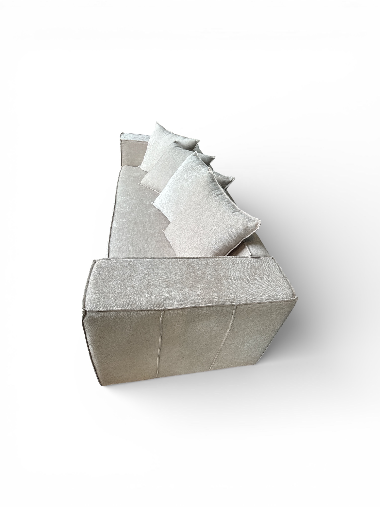 Transforma tu sala en un espacio de descanso y estilo con este elegante conjunto de sofá y love seat de diseño contemporáneo. Su estética limpia, líneas rectas y tapizado en tono claro crean un ambiente moderno, luminoso y acogedor, ideal para complementar diferentes estilos de decoración.
