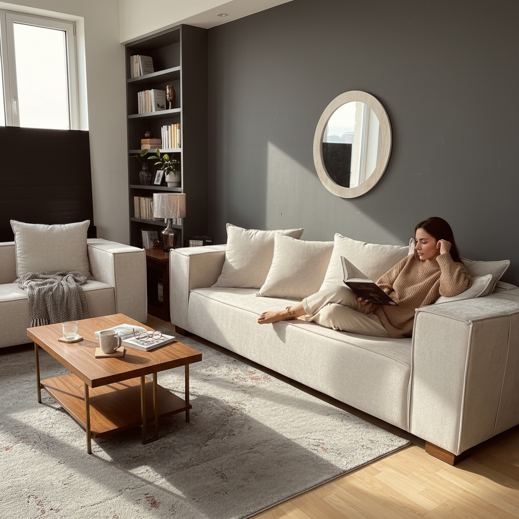 Fabricados para brindar máximo confort y durabilidad, ambos muebles cuentan con amplios asientos y cojines acolchonados que proporcionan una experiencia de descanso cómoda para disfrutar momentos de relajación, lectura o convivencia. Su tapizado en tela suave al tacto aporta una sensación cálida y sofisticada, mientras que su estructura sólida garantiza estabilidad y resistencia en el uso diario.